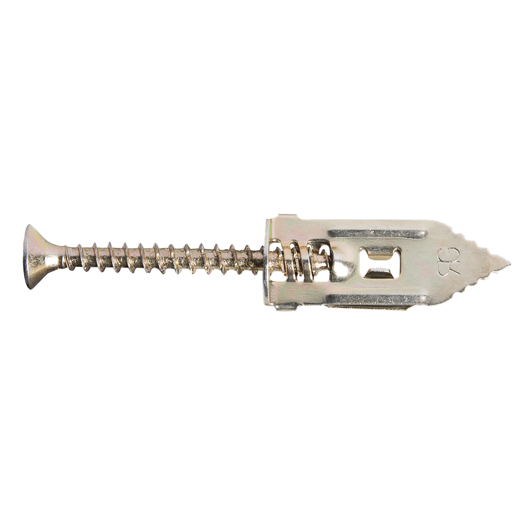 Driven metal fixing for easy installation in plasterboard.