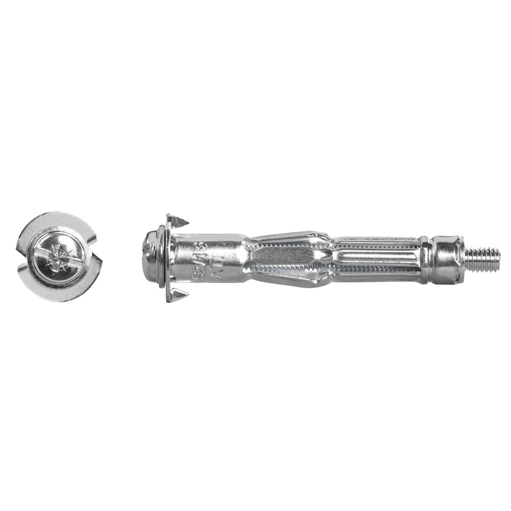 Interset fixing for permanent anchorages in cavity walls. Zinc-plated metal fixing with metric screw.